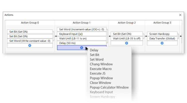 即使是復雜的連續動作組合,都可以快速又簡單地透過圖像化介面設定,且不必撰寫程式碼即可完成。