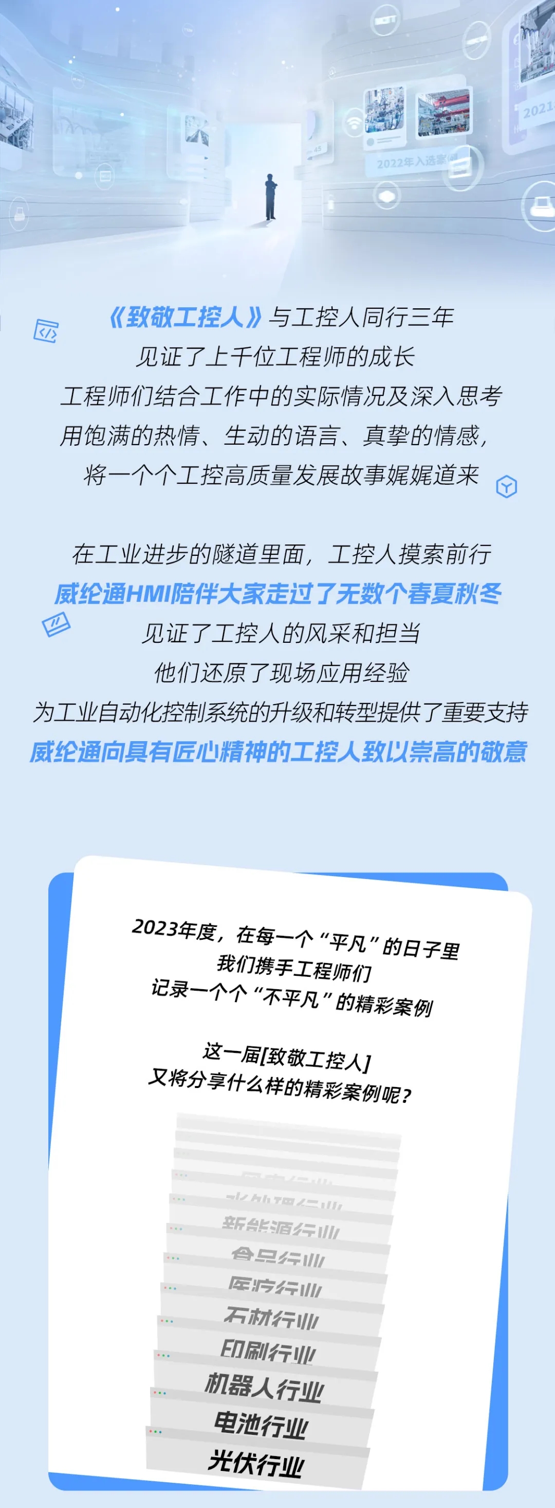 很多東西是需要時間才能建立的,用心打好基礎,一切該來的都會來。祝愿“致敬工控人”越辦越好,祝愿威綸通發展壯大,更上一層樓。