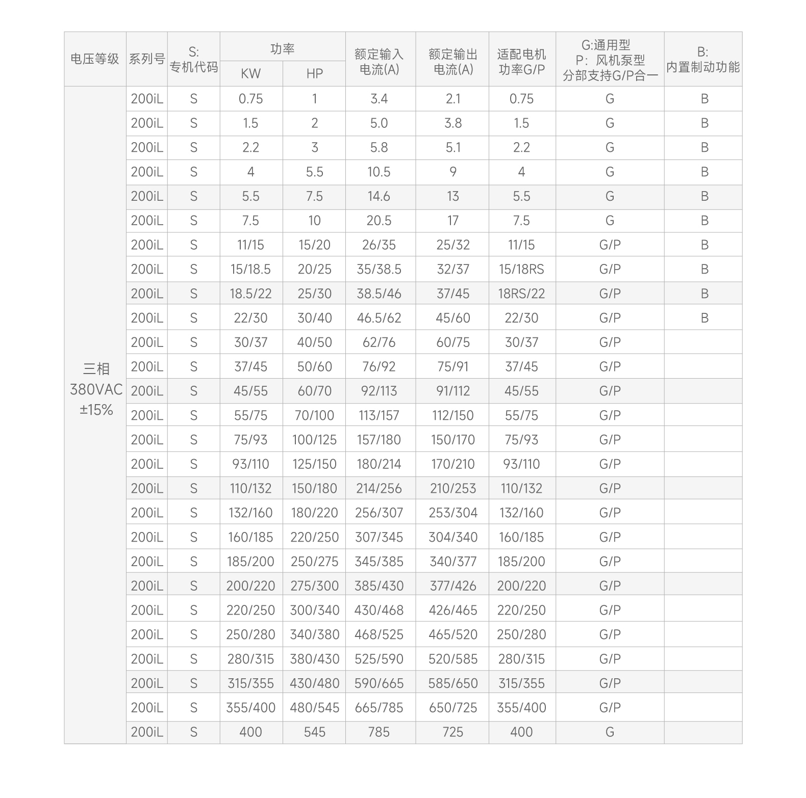 過勵磁制動功能, 實現快速制動。0.75-22kW內置制動單元